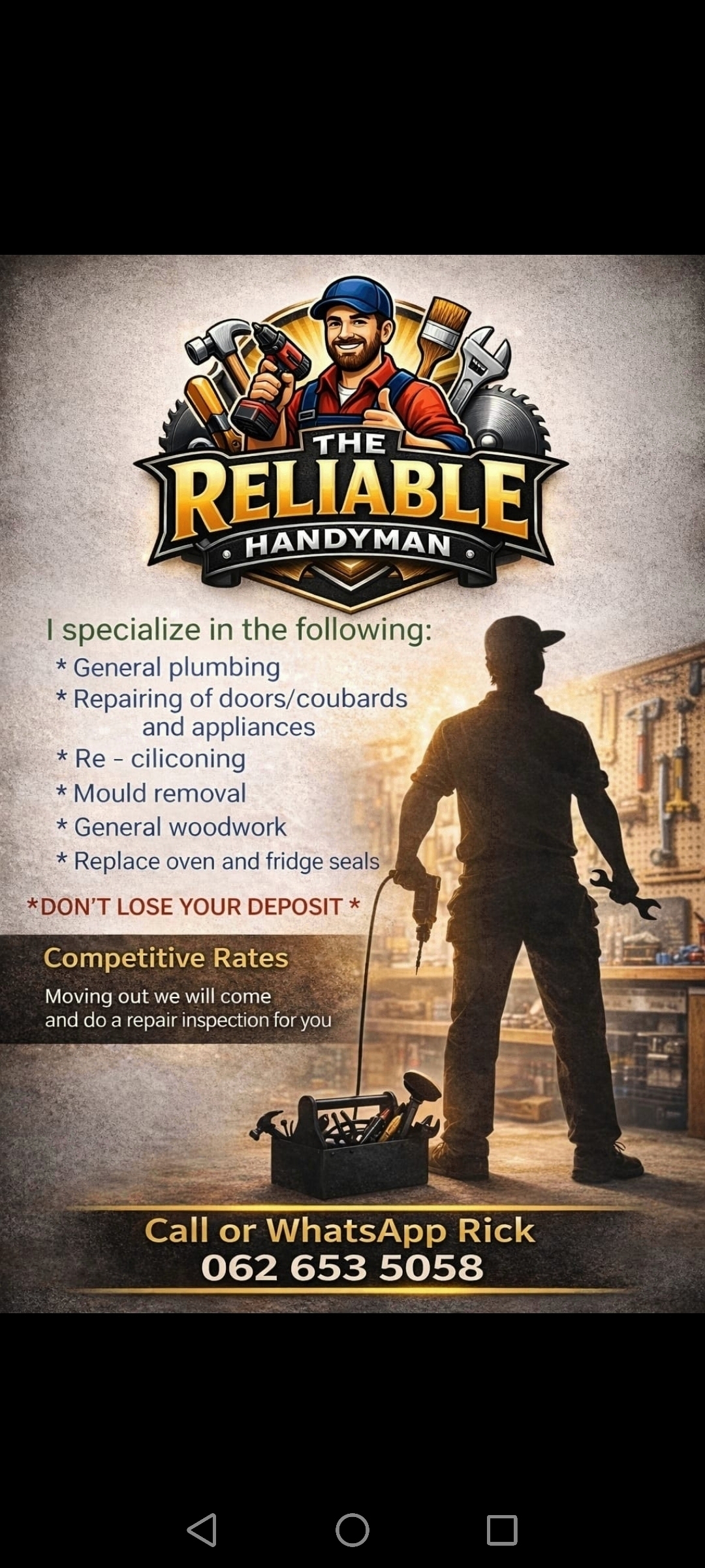 I am a handyman in Parklands. I fix what cannot be repaired.
